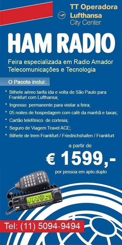 Recebemos a informação através do colega carioca Alex Grimberg PY1AHD que a operadora TT Lufthansa esta organizando um pacote de viagem para a feira de radioamador da Alemanha.